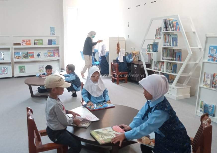 MENTOK, DPK BABAR - Perpustakaan Daerah Bangka Barat (Babar), Provinsi Kepulauan Bangka Belitung mendapat kunjungan dari SD Negeri 21 Mentok Jum’at (24/1/2025). Kunjungan kali ini berbeda dari biasanya, karena kehadiran anak kelas 1 B yang berjumlah 7 orang dari kelompok empat itu, langsung di damping para orang tua mereka masing-masing.